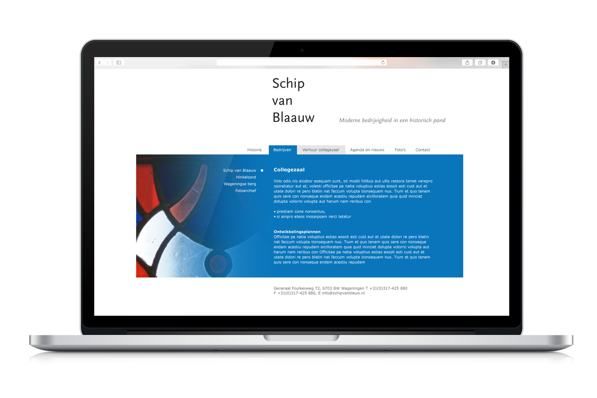 Voor het historische pand Schip van Blaauw (Amsterdamse School) heb ik een corporate identity ontworpen met een daarbij behorende stationary, een website en een rondleidingsbrochure voor bezoekers.