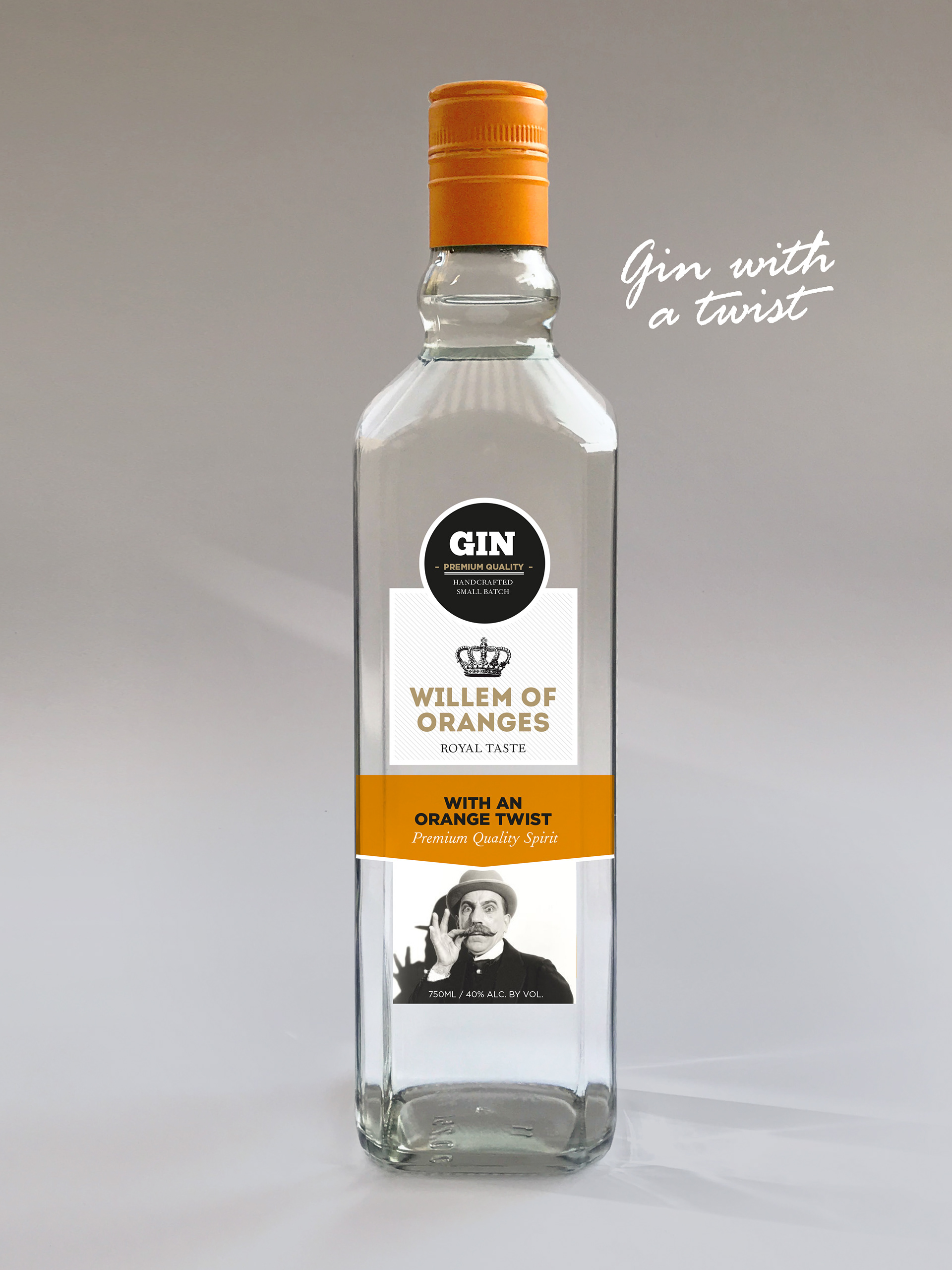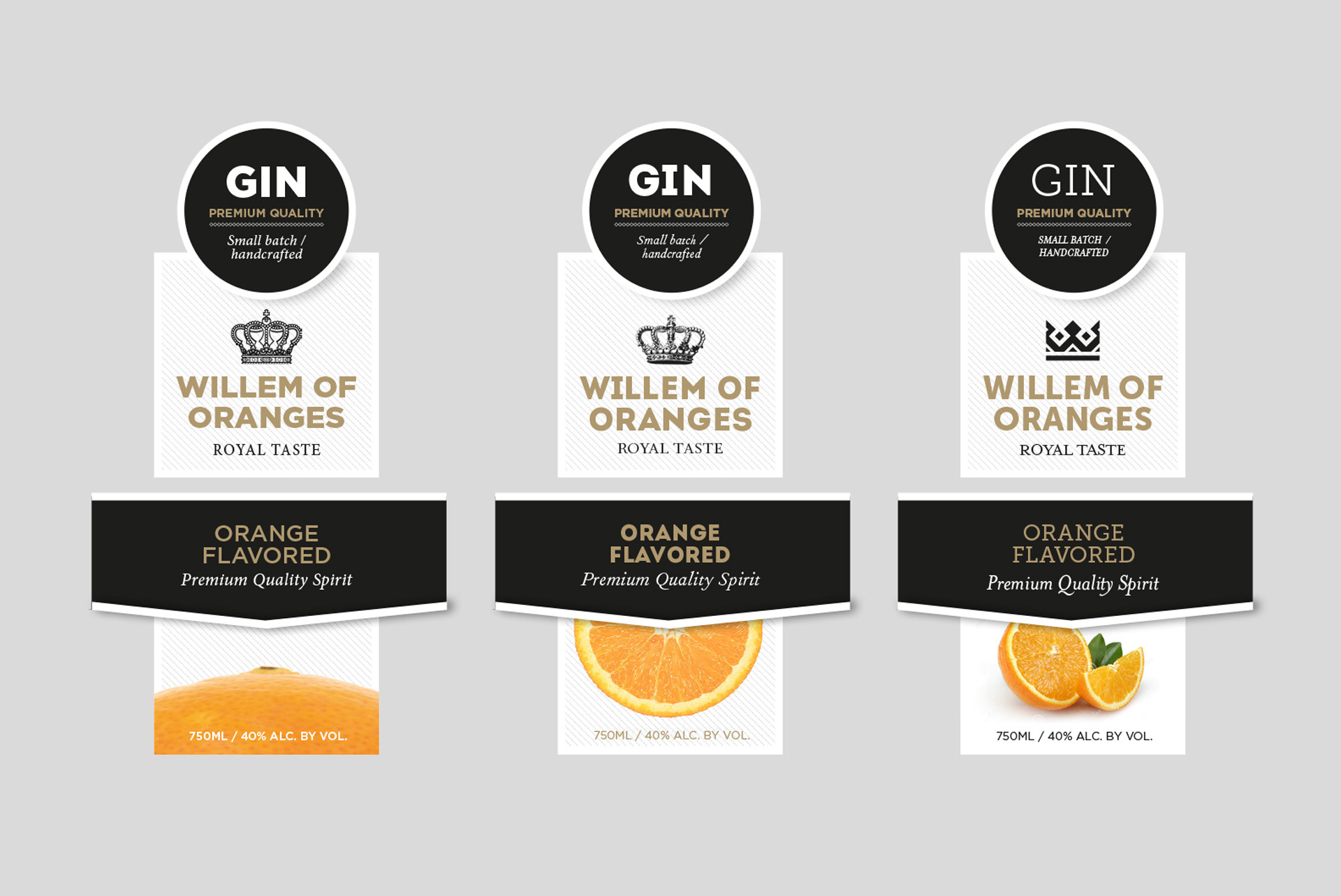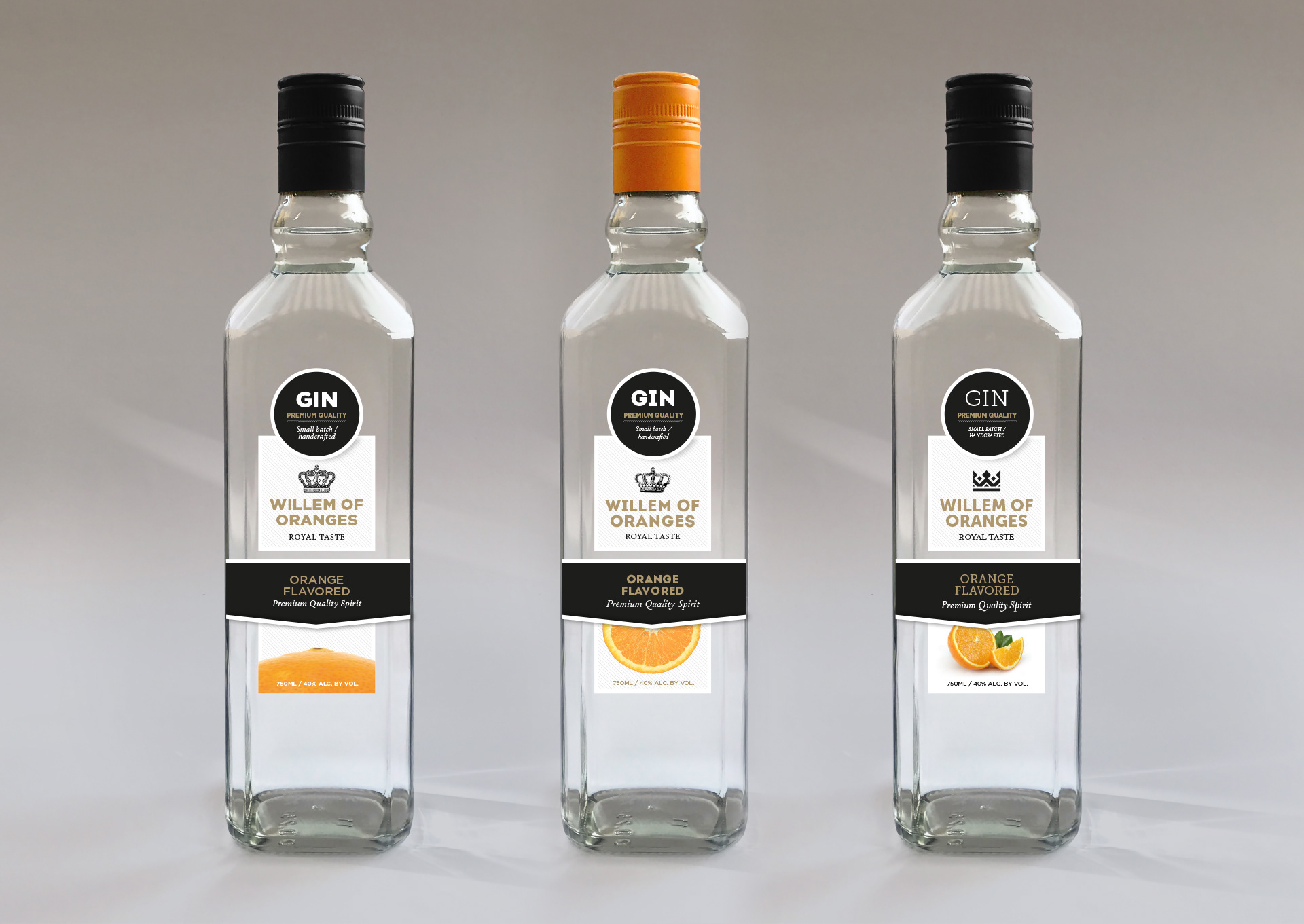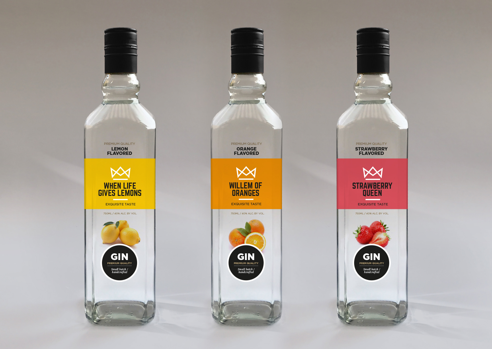 Ontwerp etiketten voor nieuw ginlabel bestemd voor de exportmarkt.