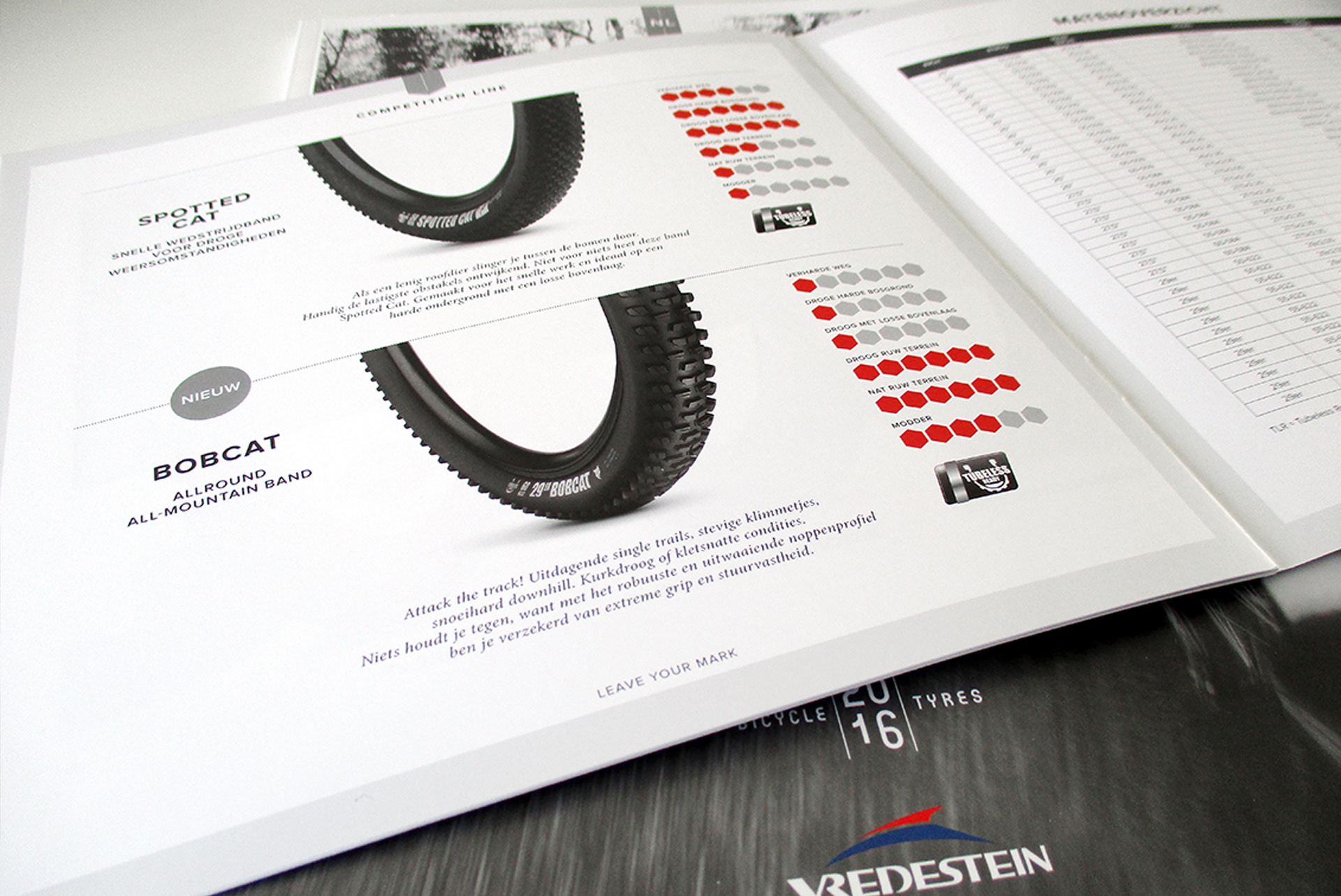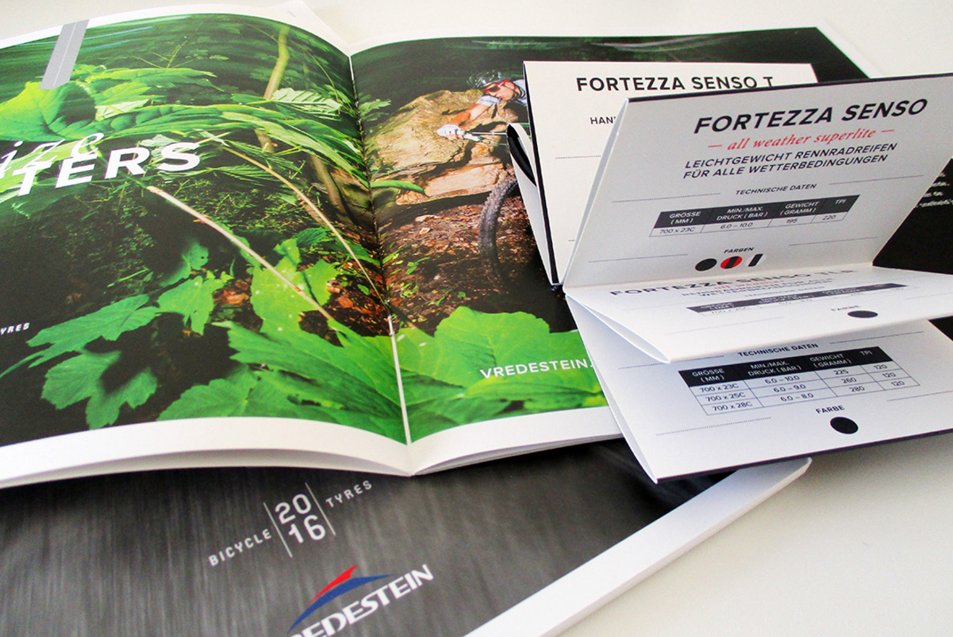 Voor bandenfabrikant Apollo Vredestein heb ik diverse consumenten- en dealerbrochures in meerdere talen vormgegeven waarin een range aan nieuwe banden voor zowel MTB als race werden gepresenteerd.